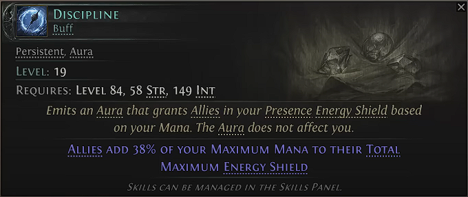 Allies add 38% of your Maximum Mana to their Total Maximum Energy Shield.